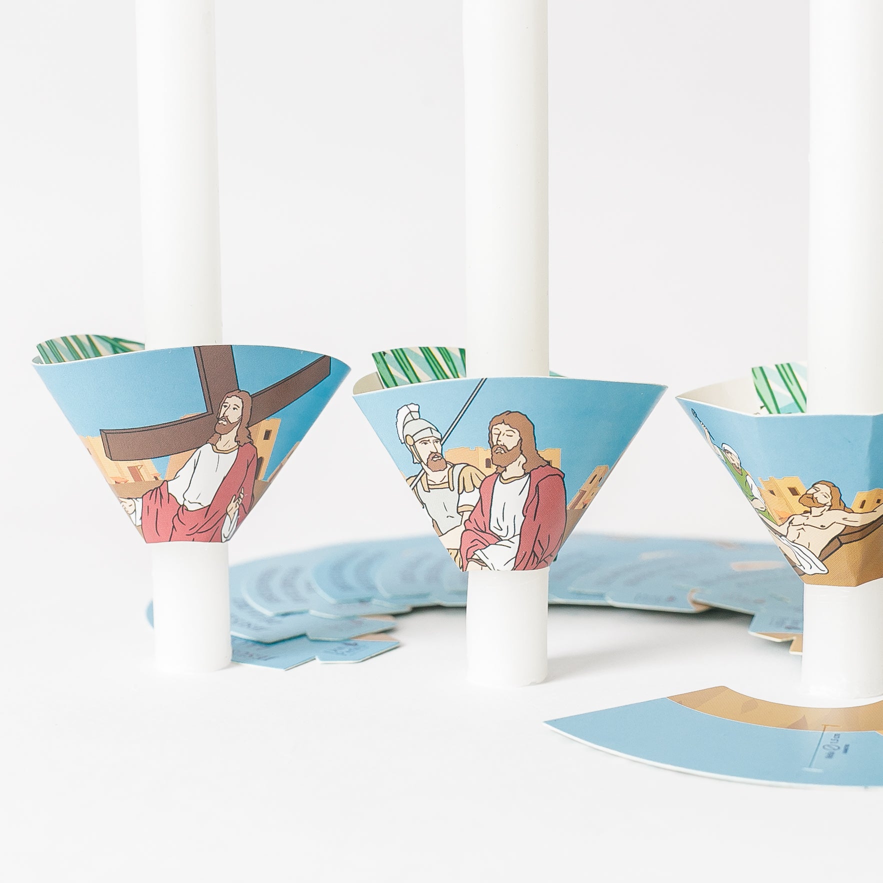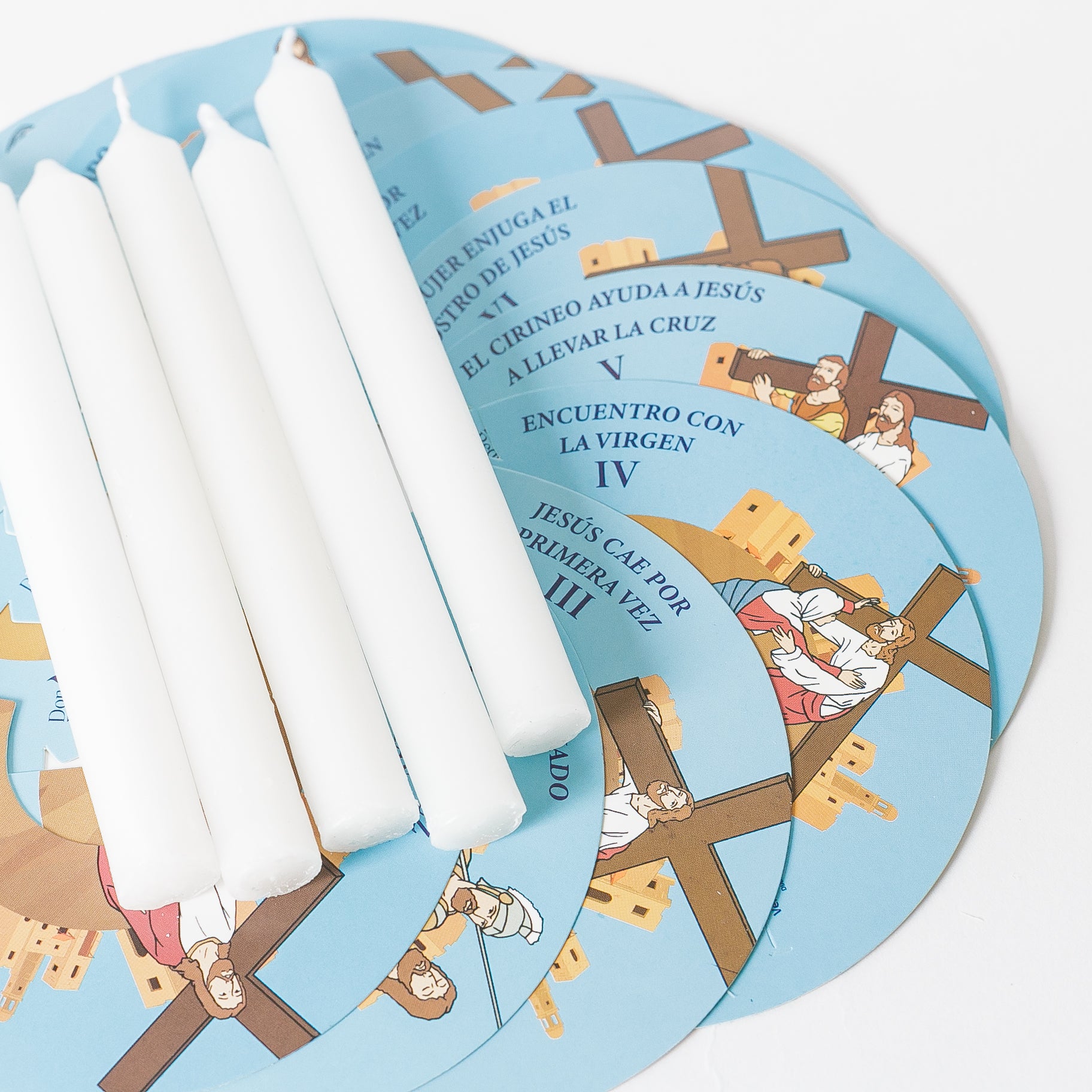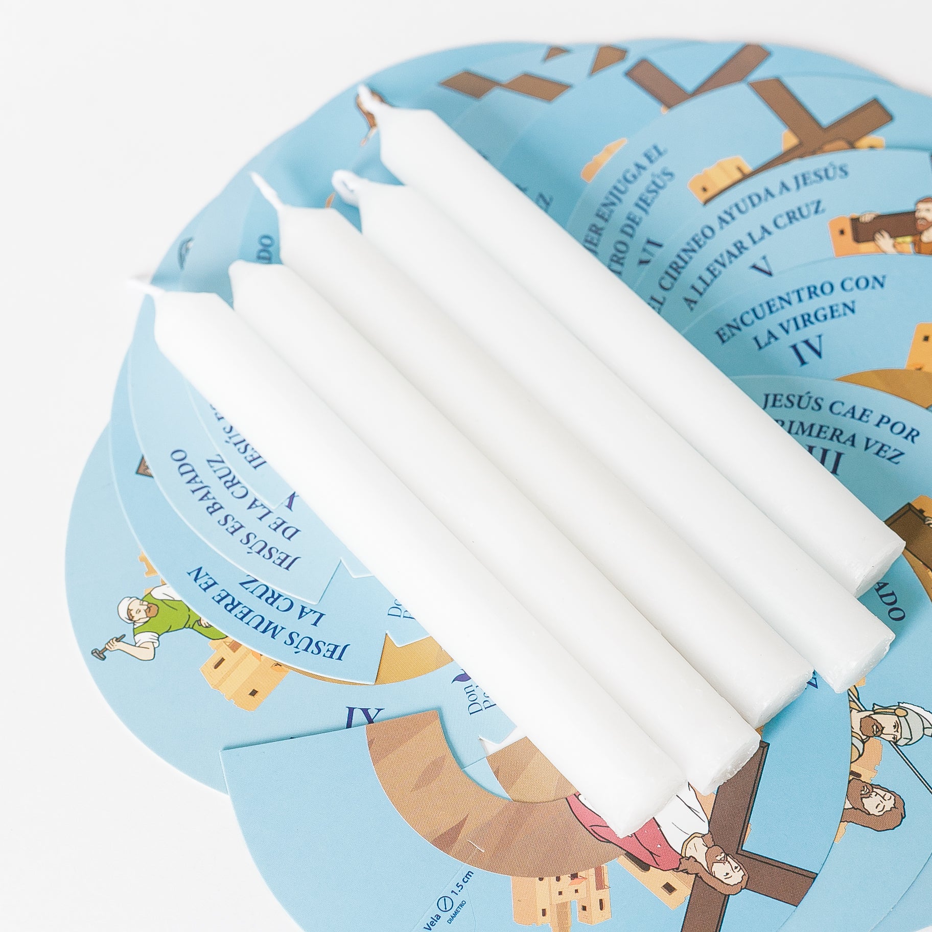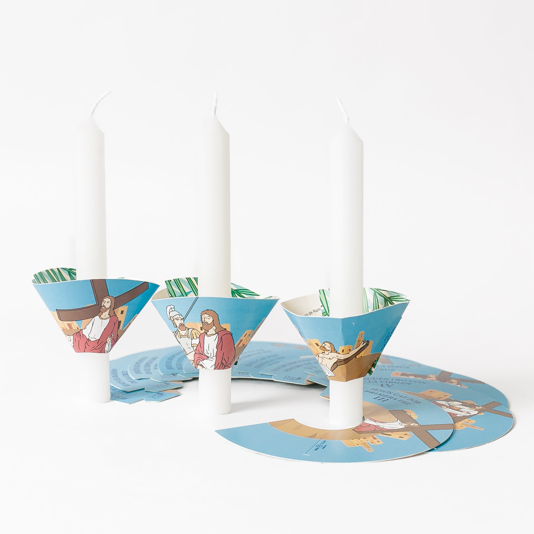 Porta velas de Semana Santa con motivo litúrgico. Vela hecha con parafina 100% pura. Cada vela ha sido meticulosamente elaborada con un pabilo de algodón para garantizar una combustión uniforme y duradera.